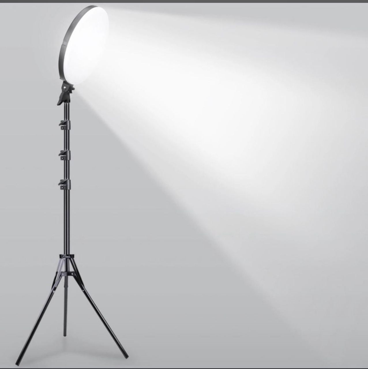 Lumière LED circulaire montée sur un trépied réglable pour un éclairage optimal en photographie, vidéo ou streaming. Design robuste avec un faisceau lumineux doux et uniforme. Facile à transporter et à ajuster en hauteur pour des résultats professionnels. Idéal pour les créateurs de contenu, photographes ou studios amateurs.
